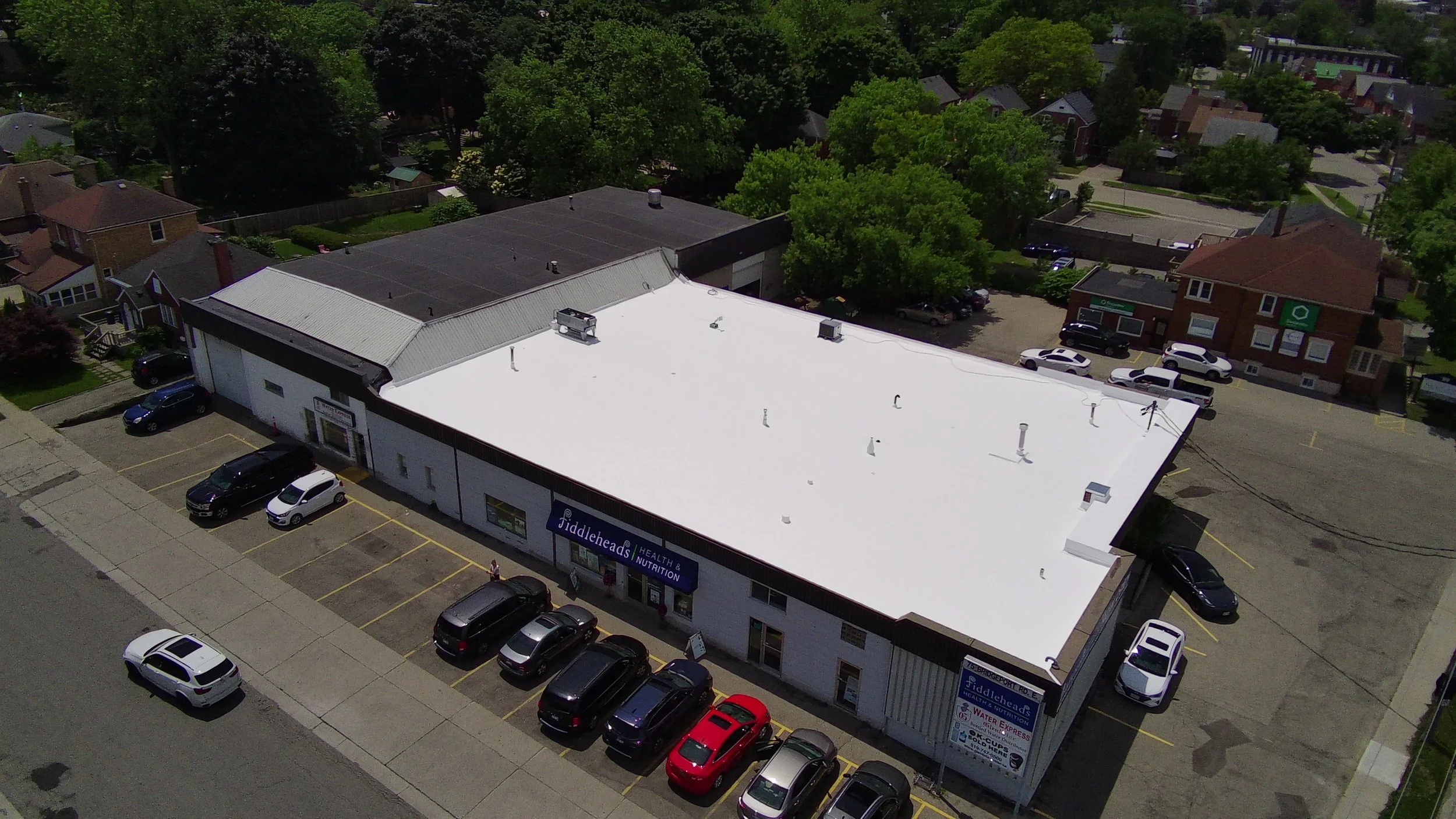 A Brubacher Roofing Fluid-Applied Seamless Silicone Roof System can be used in the restoration of most types of commercial and industrial flat roofs, including Tar & Gravel, Modified Bitumen, TPO, EPDM and PVC. Our silicone restoration system is a fluid-applied solution that is fully adhered to your existing commercial flat roof. The result is a long lasting, fully adhered, fully reinforced, seamless membrane with superior weatherability.